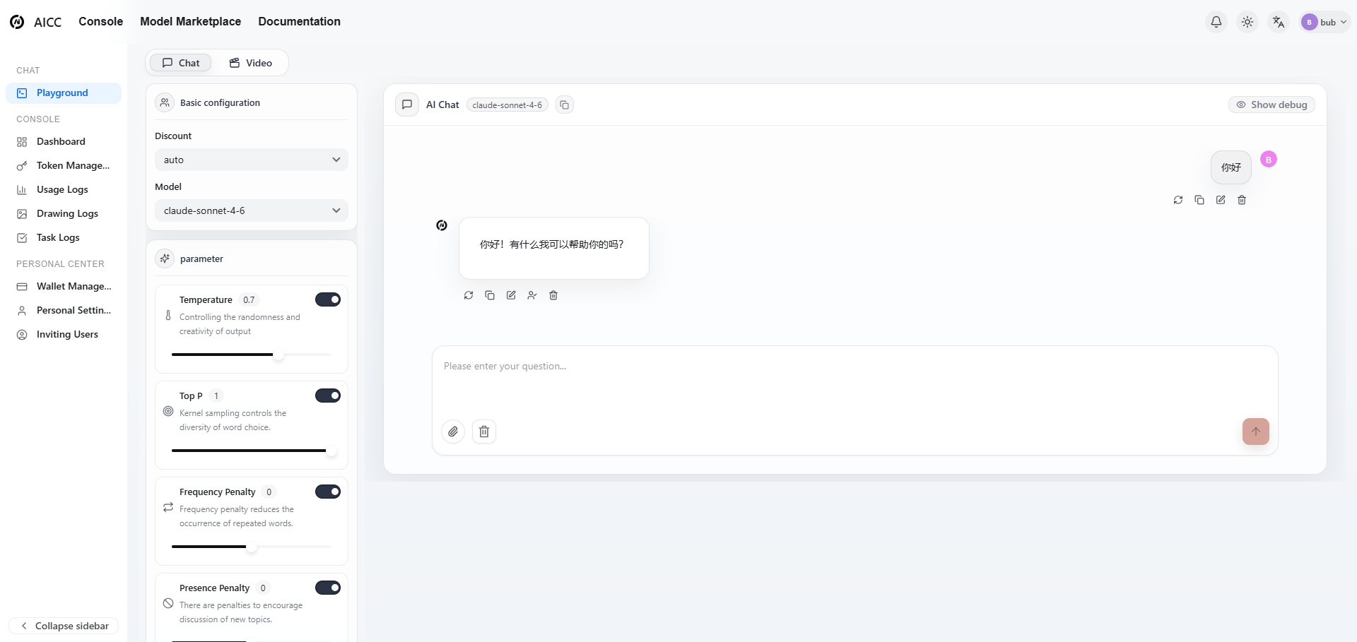 Switching between models is as simple as changing the model parameter. Teams can test different models side-by-side in AI.cc’s built-in Playground before deploying to production.